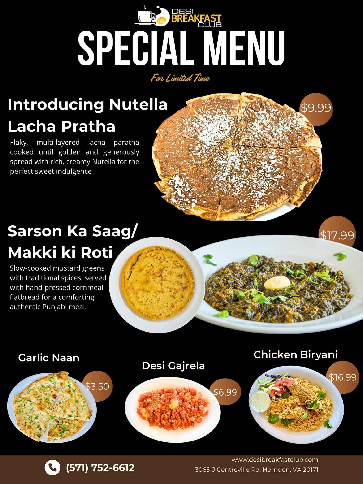 Book your table now for a delightful Desi Nashta (Breakfast) experience with family and friends.